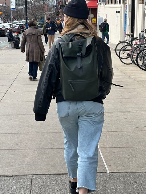 The Rains backpack is another classic with it’s minimalist and structured look. Given the rain the past few days a backpack that can survive a torrential downpour feels like a more practical choice.